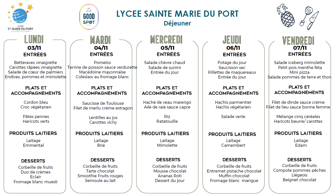 Menus déjeuner du 03/11/2025 au 07/11/2025