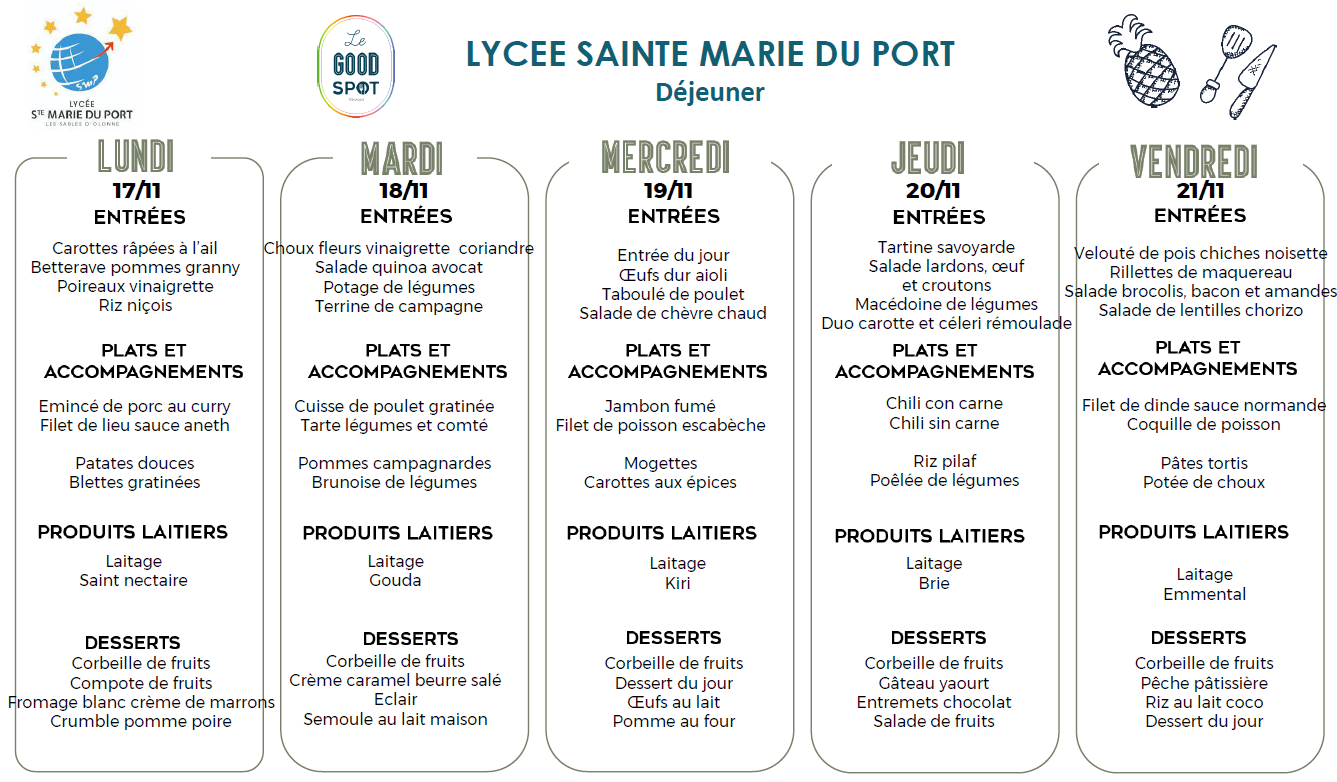 Menus déjeuner du 17/11/2025 au 21/11/2025