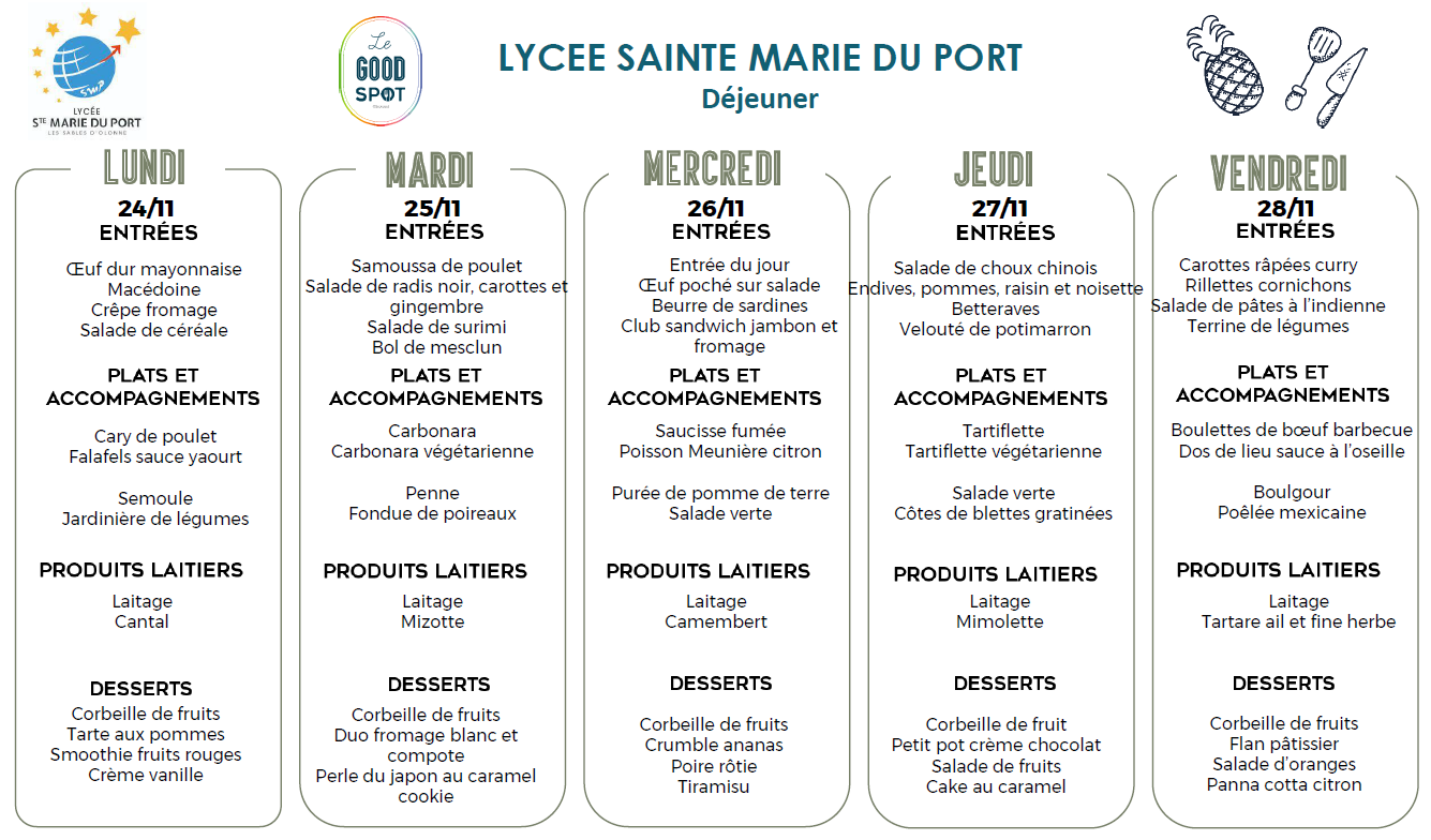 Menus déjeuner du 24/11/2025 au 28/11/2025