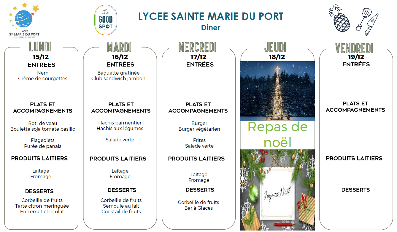 Menus diner du 15/12/2025 au 19/12/2025