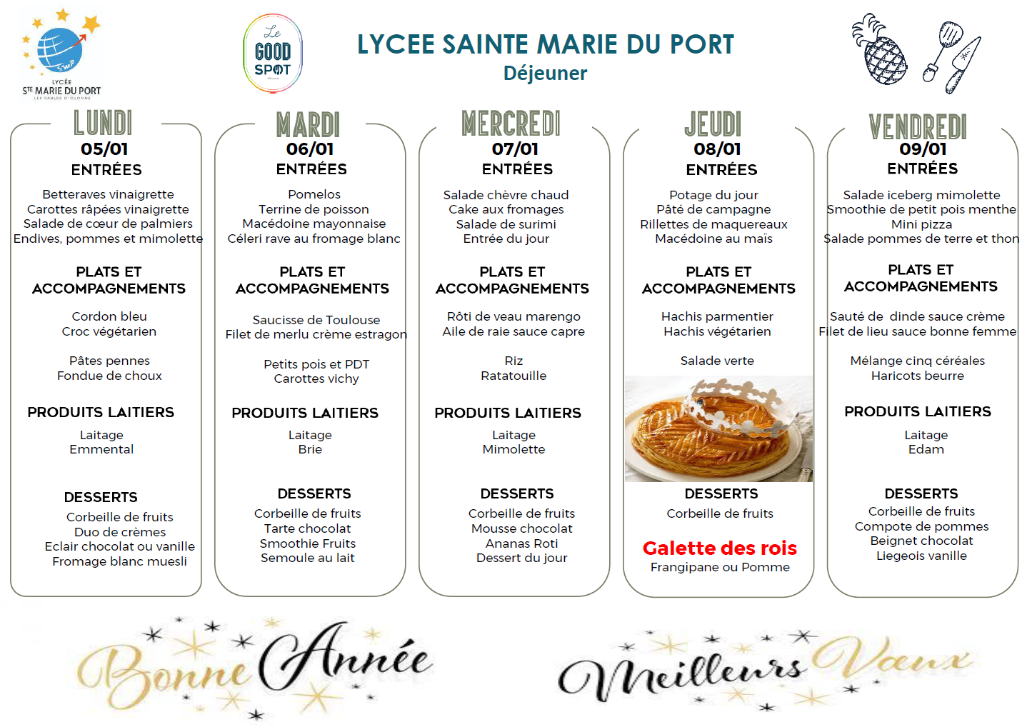 Menus déjeuner du 05/01/2026 au 09/01/2026