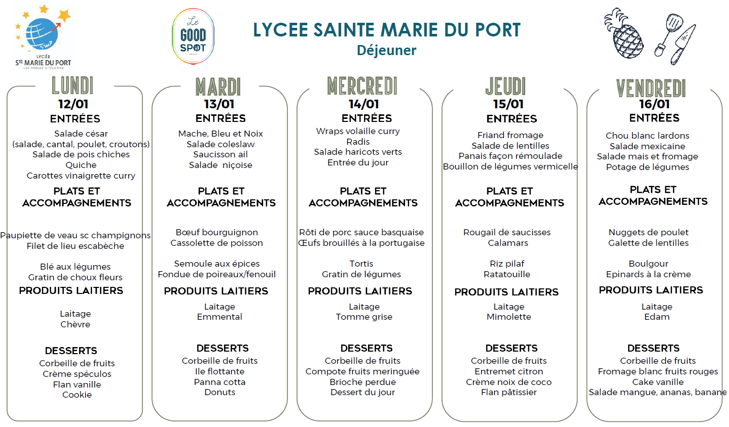 Menus déjeuner du 12/01/2026 au 16/01/2026