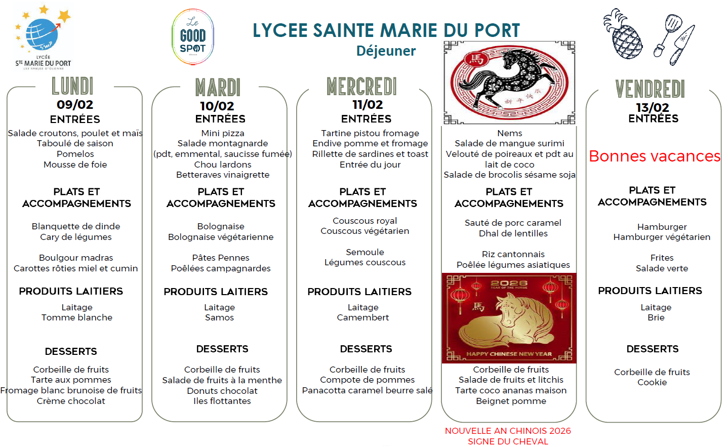 Menus déjeuner du 09/02/2026 au 13/02/2026