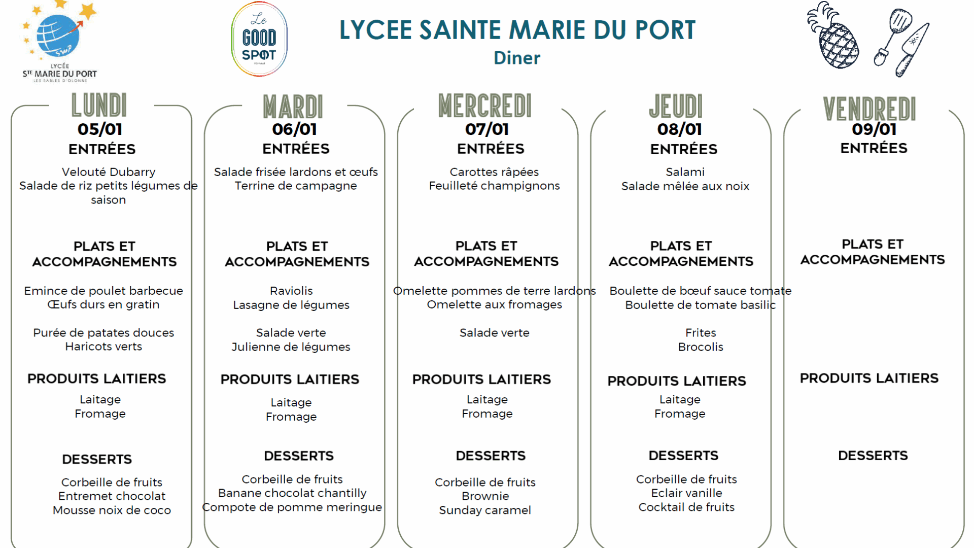 Menus diner du 05/01/2026 au 09/01/2026