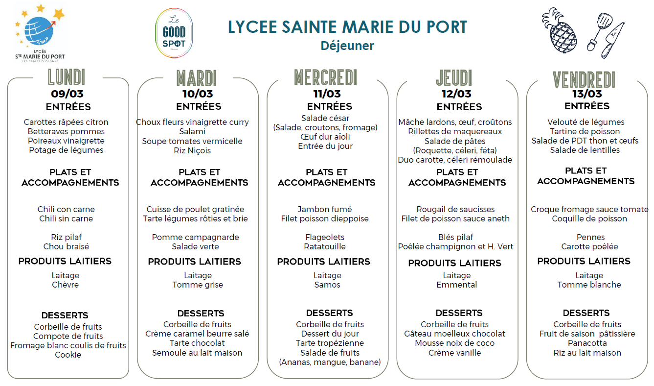 Menus déjeuner du 09/03/2026 au 13/03/2026
